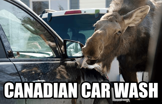 A fucking moose tonguing a car! Better the car than me. Perhaps he thought the car was an ex?